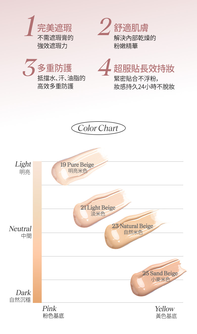 ✨ 高遮瑕不厚重,自然融入膚色不卡粉