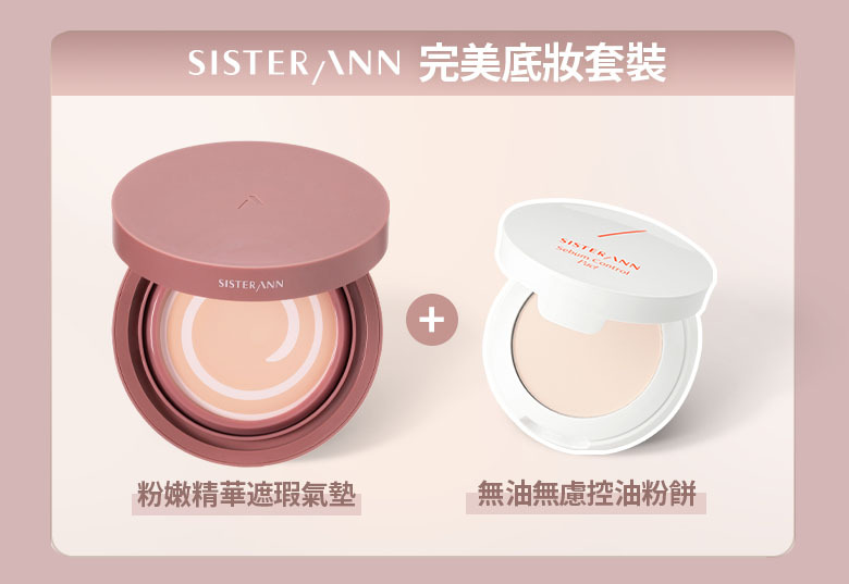 (粉嫩精華遮瑕氣墊+無油無慮控油粉餅)