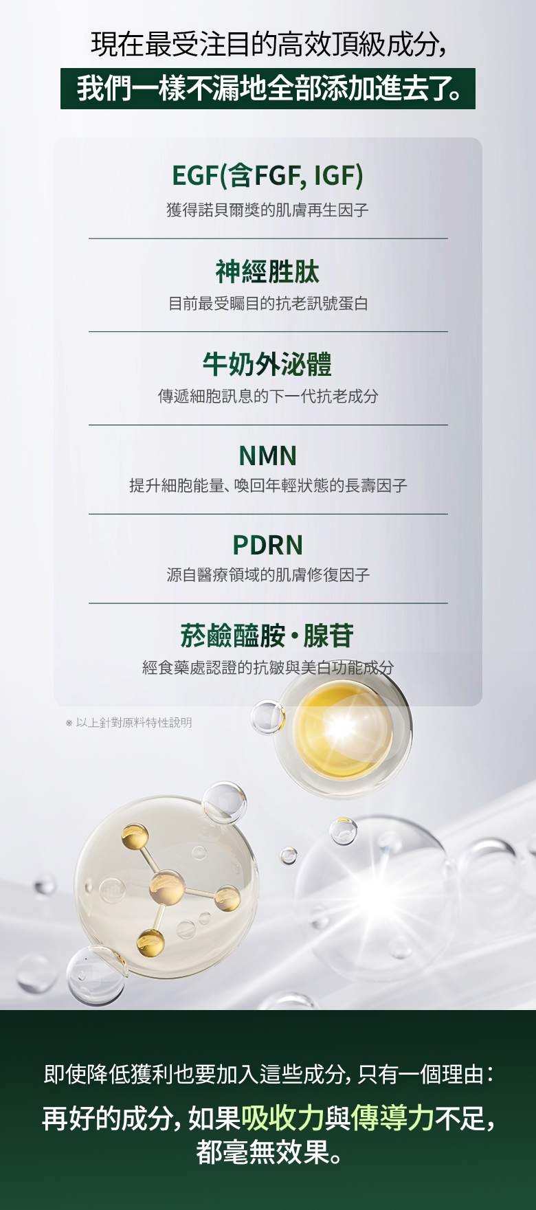 ✨ 韓國首創 EGF、菸鹼醯胺、NMN 複合配方設計