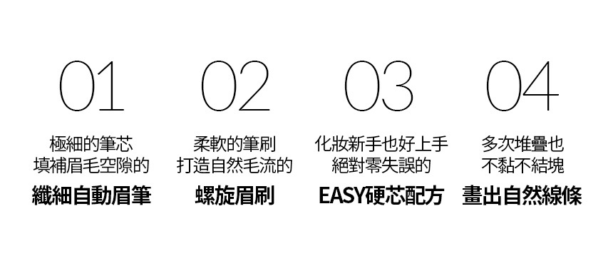 ✨ 硬芯配方搭配螺旋眉刷,輕鬆畫出自然線條