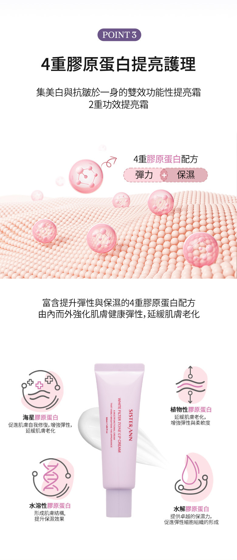 ✨添加4重膠原蛋白與亮白成分,潤澤同時提亮膚色